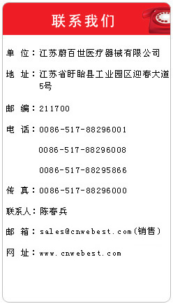 聯(lián)系人:陳春兵 地址:江蘇省盱眙縣工業(yè)園區(qū)迎春大道5號(hào) 郵編:211700 互聯(lián)網(wǎng)藥品信息服務(wù)資格證書號(hào):(蘇)-非經(jīng)營性-2023-0029 醫(yī)療器械投拆舉報(bào)電話:12315 電話:0086-517-88296001 88296008 0086-517-88295866 傳真:0086-517-88296000 網(wǎng)址:www.cnwebest_com.v7906.cn E-mail:sales@cnwebest_com.v7906.cn(銷售) 后臺(tái)管理 郵箱登錄 備案號(hào):蘇ICP備17002214號(hào)-1 |
